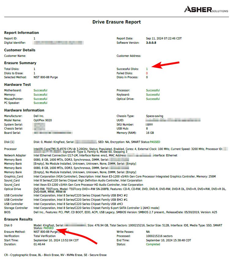 Protect your sensitive data with our secure data erasure service. We guarantee the permanent erasure of data from hard drives, solid-state drives, and other storage devices using industry-leading software-based methods. Our process adheres to standards such as DoD 5220.22-M and NIST 800-88 Purge . The software we use is ISO 27001 certified and approved by internationally recognized organizations such as NIST, ensuring full compliance with HIPAA requirements for the secure handling of sensitive information.